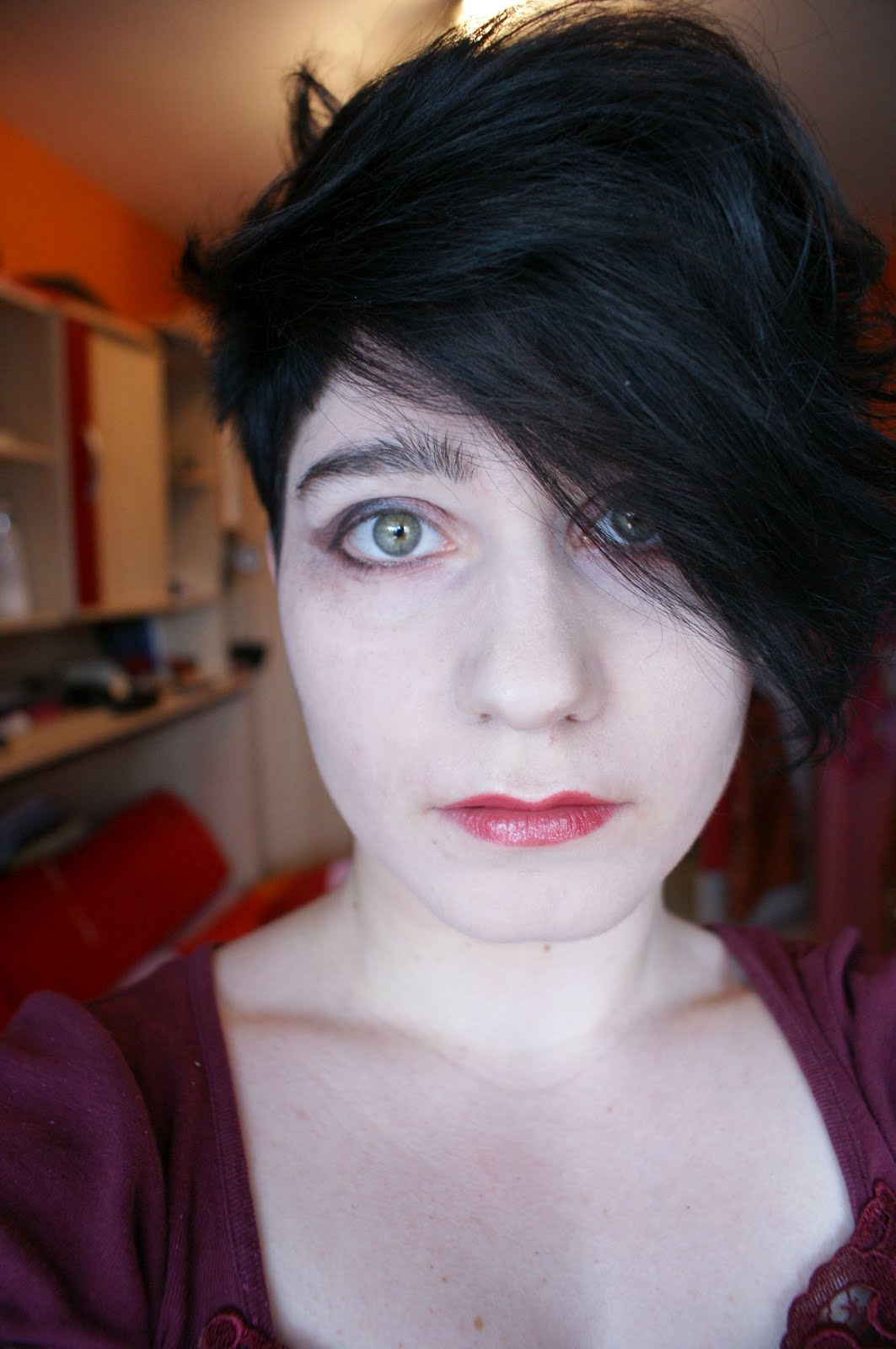 That's how my hair finally looks. Everyfuckingone has black hair now. But I don't care. First I wanted to dye it violet because I didn't go with this trend, but hey, I already had violet hair. And black is almost my natural colour. So... fuck off, blondies gone black and all gothic.