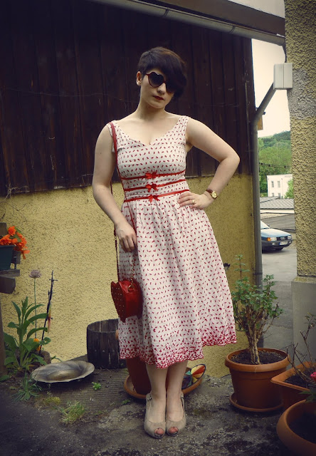 This is what I'm sewing right now. Which means... I'm working for weeks on this thing! First I started it wrong. I've sewn the green satin layer of the dress first. But I didn't think of the black lace. Especially that it would look shitty with the tucks if I just sewed both layers together at the shoulder. Soooo... I had to tear everything I've sewn apart and start again. I then have been so angry that I didn't lay a freaking finger on this dress for a week. Well... Now I just have to make it maybe a little longer, it's too short for my taste, I've gotta sew the neckline (which should be heart-shaped... which will be pretty hard. Maybe I'm just sewing it rectangular.) and put in the zipper at the back. Oh and of course I've gotta add sleeves. It's gonna have long wide lace sleeves. I hope I get it done on Friday so I can wear it at my aunts place on the weekend...